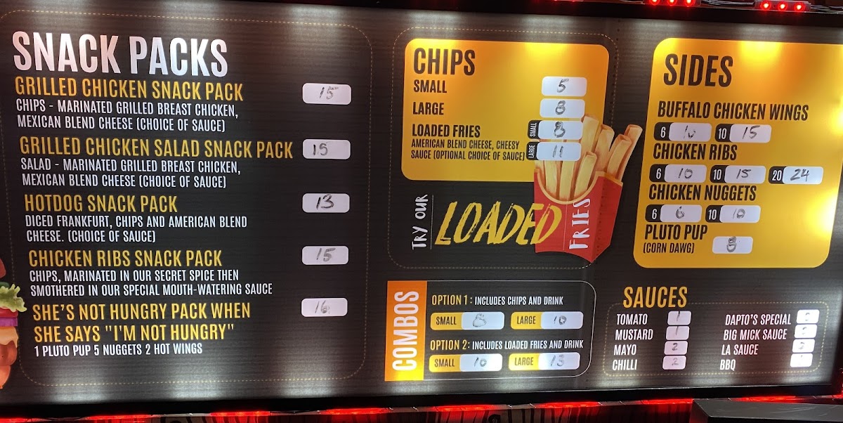 Introducing the menu at Daptos Condell Park, located at 130 Edgar St, Condell Park NSW, you'll discover a culinary gem that's redefining takeout in Sydney. Packed with flavors, their offerings range from classic favorites to innovative creations. Begin your feast with appetizers like the rich Classic Fried Chicken Burger A$10.00 or the indulgent Big Mick A$15.50, echoing the charm of fast food but with premium quality. Pizzas are a standout here, boasting a delectable range from the Veggie Supreme to the Classic NY, each slice featuring a perfect crust and generous toppings that have garnered rave reviews from customers like Jaye Matheson-Buick and Harry G. The ambiance is vibrant, complemented by friendly service that makes every visit memorable. If you seek a satisfying meal that hits all the right notes, Daptos Condell Park is definitely worth exploring.